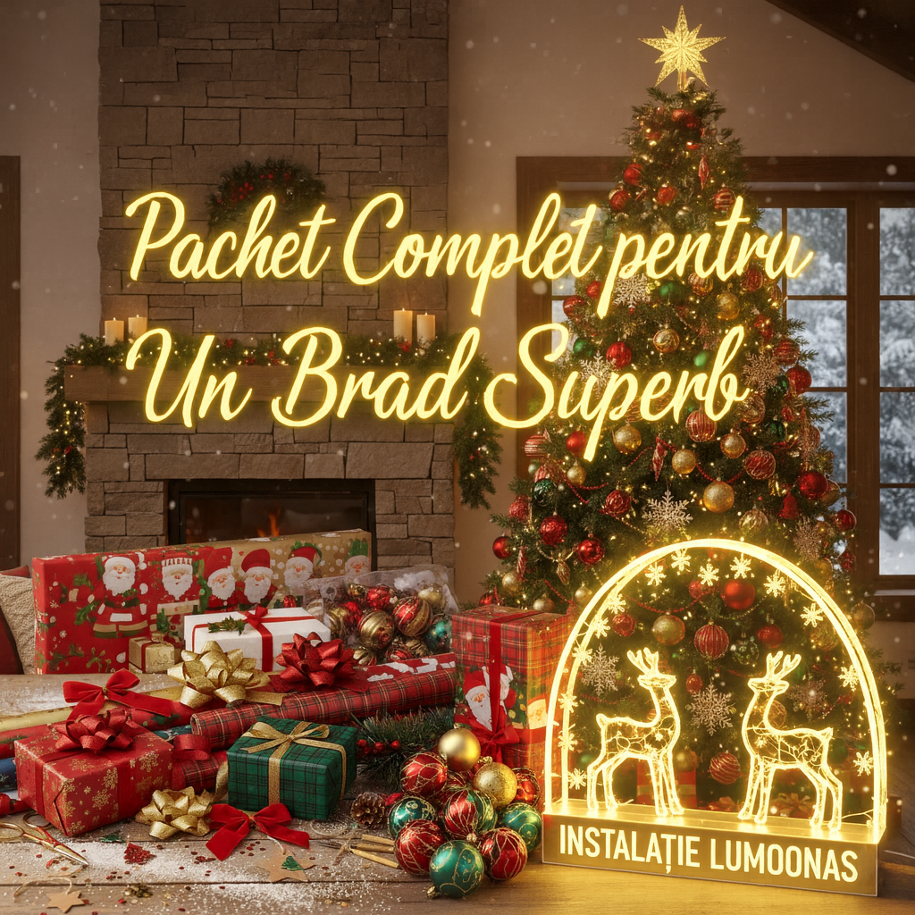 Obține bradul perfect fără efort! Pachetele noastre complete includ tot necesarul pentru împodobirea oricărei dimensiuni de brad. Comandă o singură dată și beneficiezi de transport unic. Soluția completă e la noi!